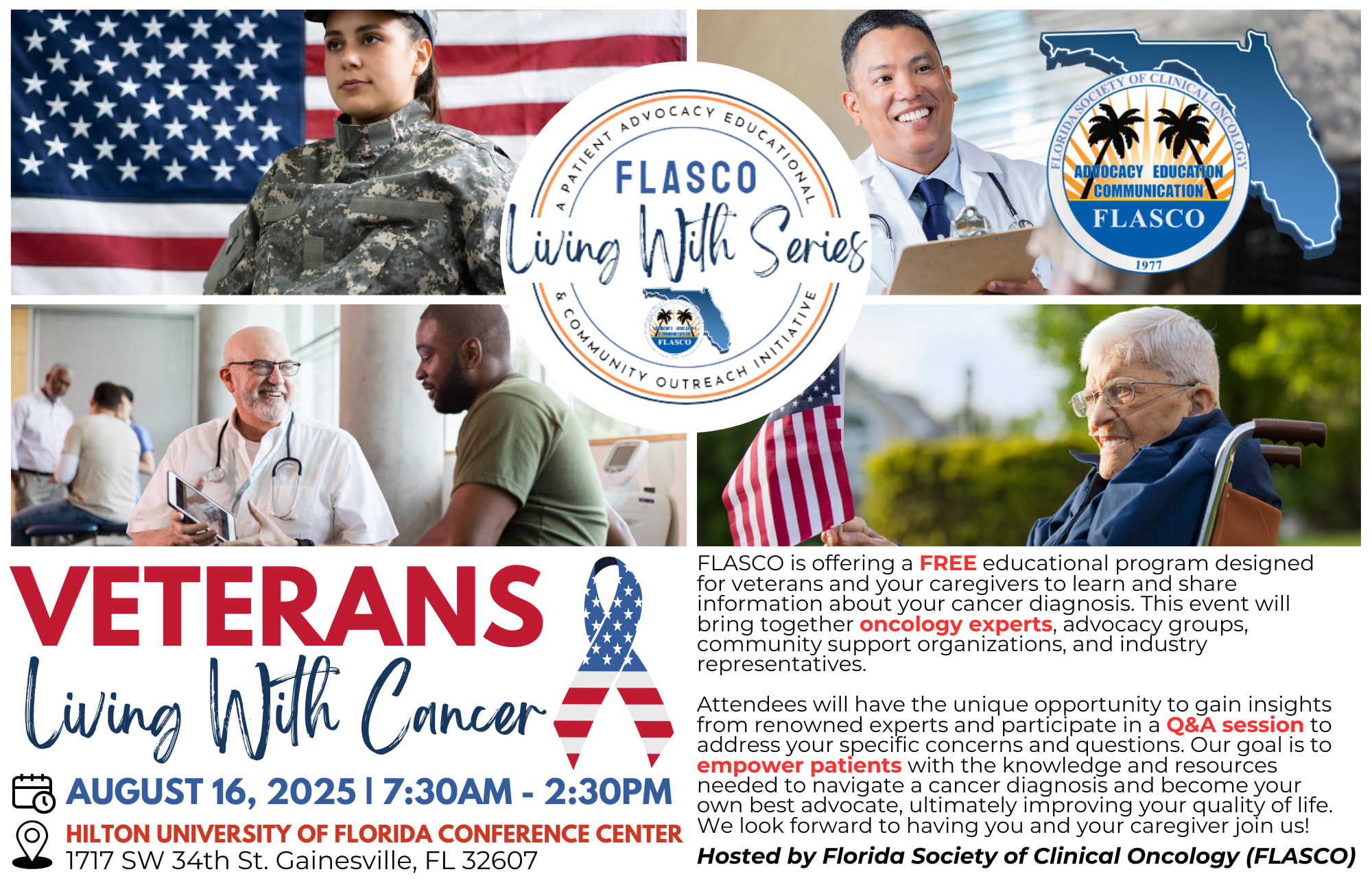 The Veterans Living With Cancer program is a patient-centered initiative designed to provide essential support and education to veterans navigating cancer treatment and survivorship. Through expert-led discussions and open dialogue, the program aims to empower veterans and their families with up-to-date information on cancer care, treatment options, and resources available to them. By fostering a compassionate community and promoting self-advocacy, this program helps veterans make informed decisions about their health while offering a space for connection and shared experiences. This program is extended FREE to patients and caregivers!