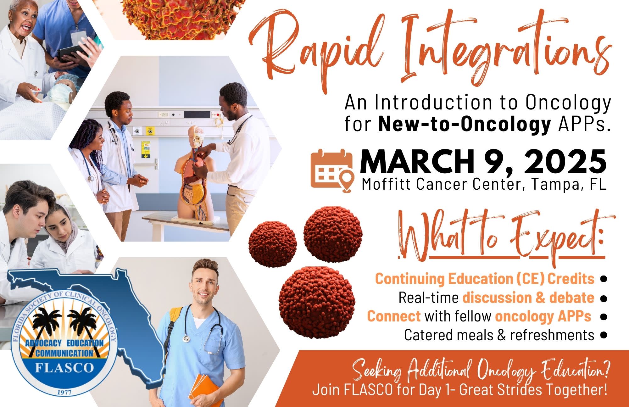 The FLASCO Rapid Integration Course is an educational initiative for clinicians new to the area of hematology/oncology. As the demand for advanced practice providers increases, many of these providers come from fields other than hematology/oncology. The goal of this course is to close the gap of knowledge for these new providers and to provide skills that are important in a hematology-oncology practice by rapidly integrating them into the oncology workforce.