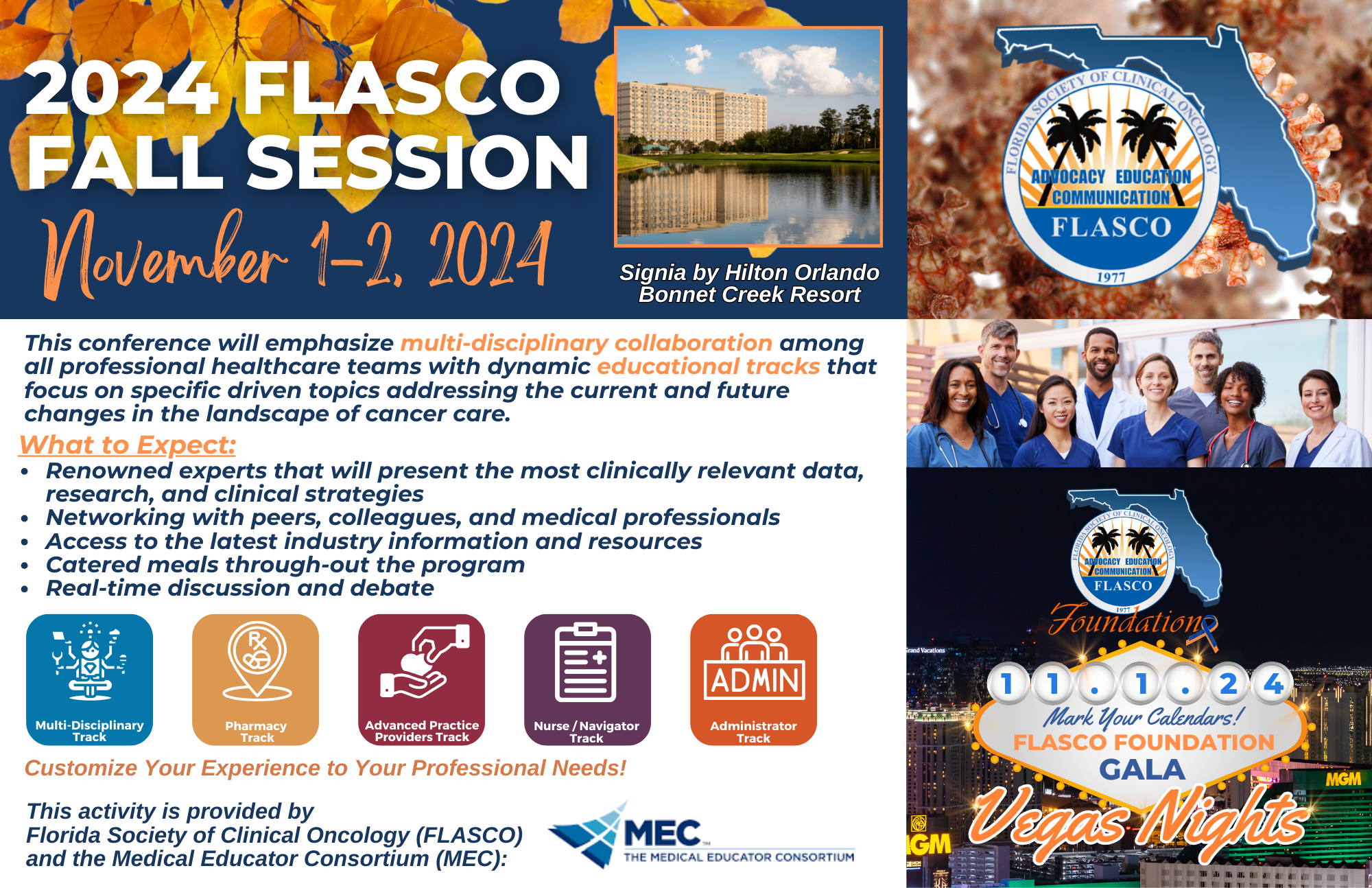 The Florida Society of Clinical Oncology is hosting it's 2024 Fall Session, a two-day conference featuring five educational tracks: Multidisciplinary, Pharmacy, APP, Nurse/Navigator, and Administrator. This conference will provide a forum for clinicians from all disciplines to discuss current trends in oncology care, share best practices, and collaborate on improving patient outcomes. This event will include presentations from experts in the field of oncology. There will also be time for discussion and networking.