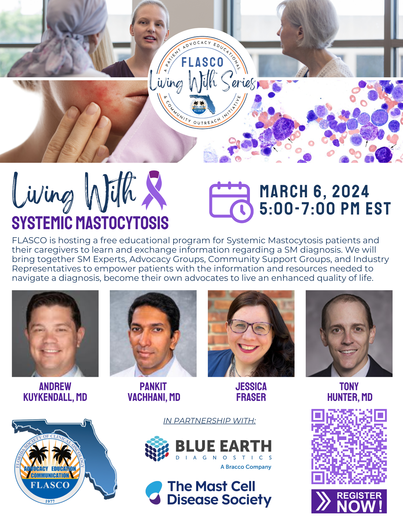 FLASCO is hosting a free educational program for Systemic Mastocytosis patients and their caregivers to learn and exchange information regarding a SM diagnosis. We will bring together SM Experts, Advocacy Groups, Community Support Groups, and Industry Representatives to empower patients with the information and resources needed to navigate a diagnosis, become their own advocates to live an enhanced quality of life.